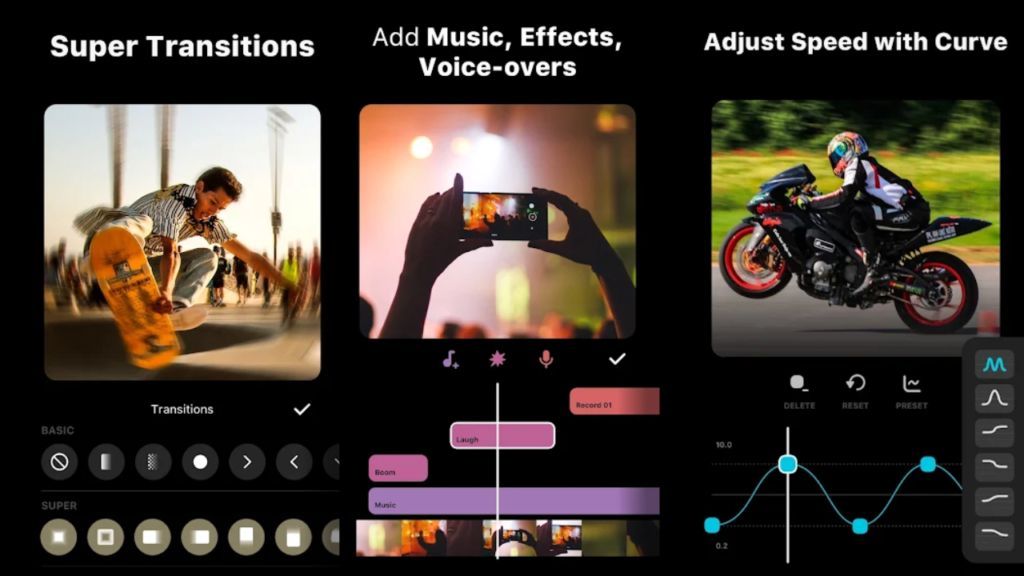 অটোমেটিক সাবটাইটেল তৈরি এবং ভয়েস জেনারেট করার সুবিধা রয়েছে। ক্রিয়েটিভ এডিটিংয়ের জন্য বিভিন্ন এআই ফিচার আছে। খুব সহজেই ব্যাকগ্রাউন্ড রিমুভ করা, রয়্যালটি-মুক্ত সাউন্ডট্র্যাক এবং সাউন্ড ইফেক্ট এড করা যায়। এটি লং প্রজেক্টের জন্য প্রযোজ্য নয়।